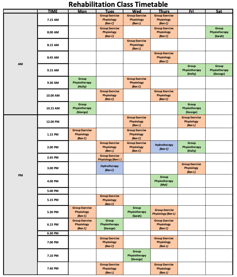 At Healthy Bodies Physiotherapy we recognise that some patients require supervision with rehabilitation to more efficiently achieve their goals. This is why we provide a number of supervised small group rehabilitation classes every week including: